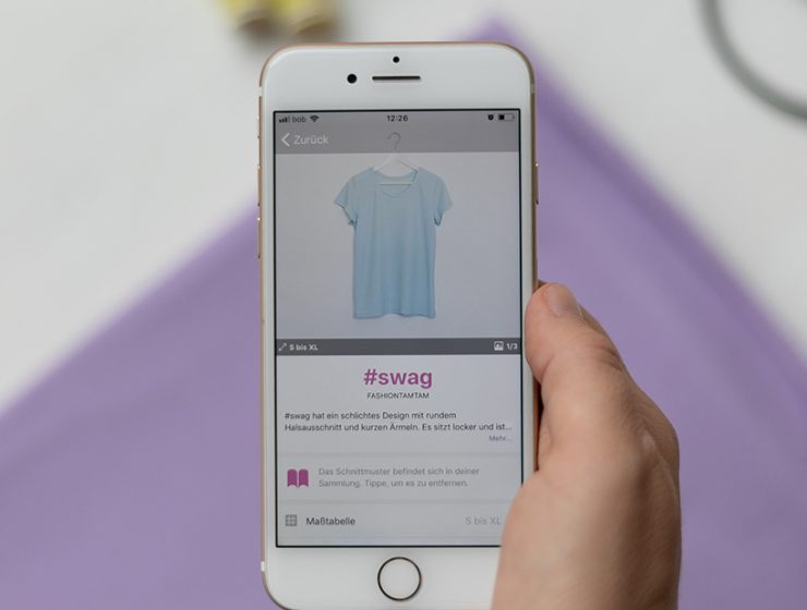 Mittels Pattarina App werden Schnittmuster direkt auf den Stoff übertragen. Auch Fashiontamtam ist mit dem beliebten T-Shirt Schnitt #swag als Pattarina Schnittmuster dabei.