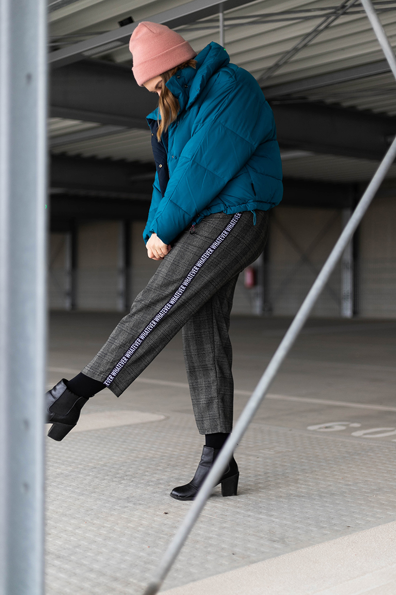 Ich habe mich sofort in den Karo – oder wie manche es nennen – Opa-Stoff verliebt. Ursprünglich wollte ich daraus einen Rock mit Zipp in der Mitte machen. Aber dann habe ich auch noch bei Wunderpop diese Textilbänder entdeckt und wusste dass ich diese beiden Trendteile kombinieren werde.
