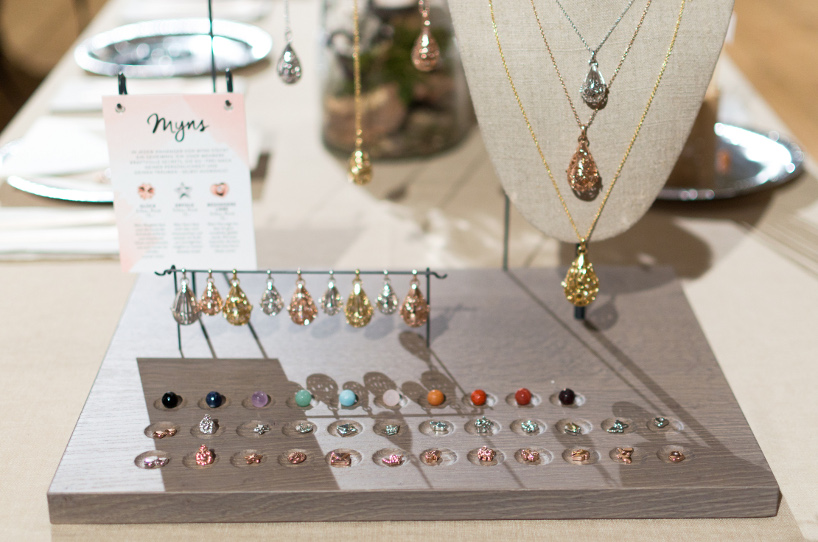 Gleich als wir angekommen sind, wurden wir von der „Geschichtenerzählerin“ wie sie sich selbst nannte, empfangen. Die Dame klärte uns auf, was eigentlich hinter Myns steckt. Es gibt verschiedene Anhänger in den Farben Gold, Silber und Rose in denen man seine eigenen Geheimnisse aufbewahren kann. Diese Secrets sind kleine Steine oder Symbole, die Platz im Anhänger finden. Je nach Größe des Anhängers können unterschiedlich viele Geheimnisse aufbewahrt werden.