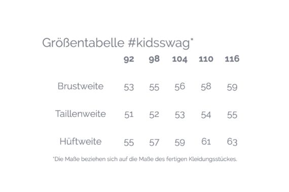 * Schnittmuster in den Größen 92, 98, 104, 110 und 116 bei #kidsswag, S, M, L und XL #menswag, sowie S, M, L, und XL #swag (genaue Größentabelle siehe